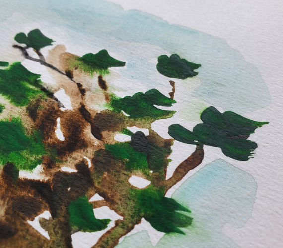 Aussenmaße Passepartout: 40 x 30 cm. Wasserfarbe und Gold auf Aquarellpapier. Preis: 130,- Euro.