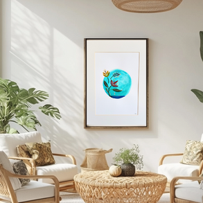 Auf Wunsch versende ich dein Werk mit einem ganz besonderen, asiatisch angehauchten Rahmen, den ich selbst entwickelt habe: Einem "Floating Frame" aus Bambus. Das Werk wird mit 4 Magneten und einer natürlichen Kordel an einem Bambusstab aufgehängt, ähnlich den japanischen Bambusrollen (siehe Foto). Es ist ein einzigartiges, filigranes & elegantes Rahmen-Design, was dem Betrachter den Eindruck gibt, als würde das Werk an der Wand schweben. Einen regulären Rahmen mit Glas biete ich nicht an.
